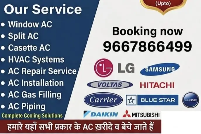 AC Repairing: Split AC ho ya Window AC, har tarah ki fault fixing (Gas leakage, PCB repair, Compressor check).