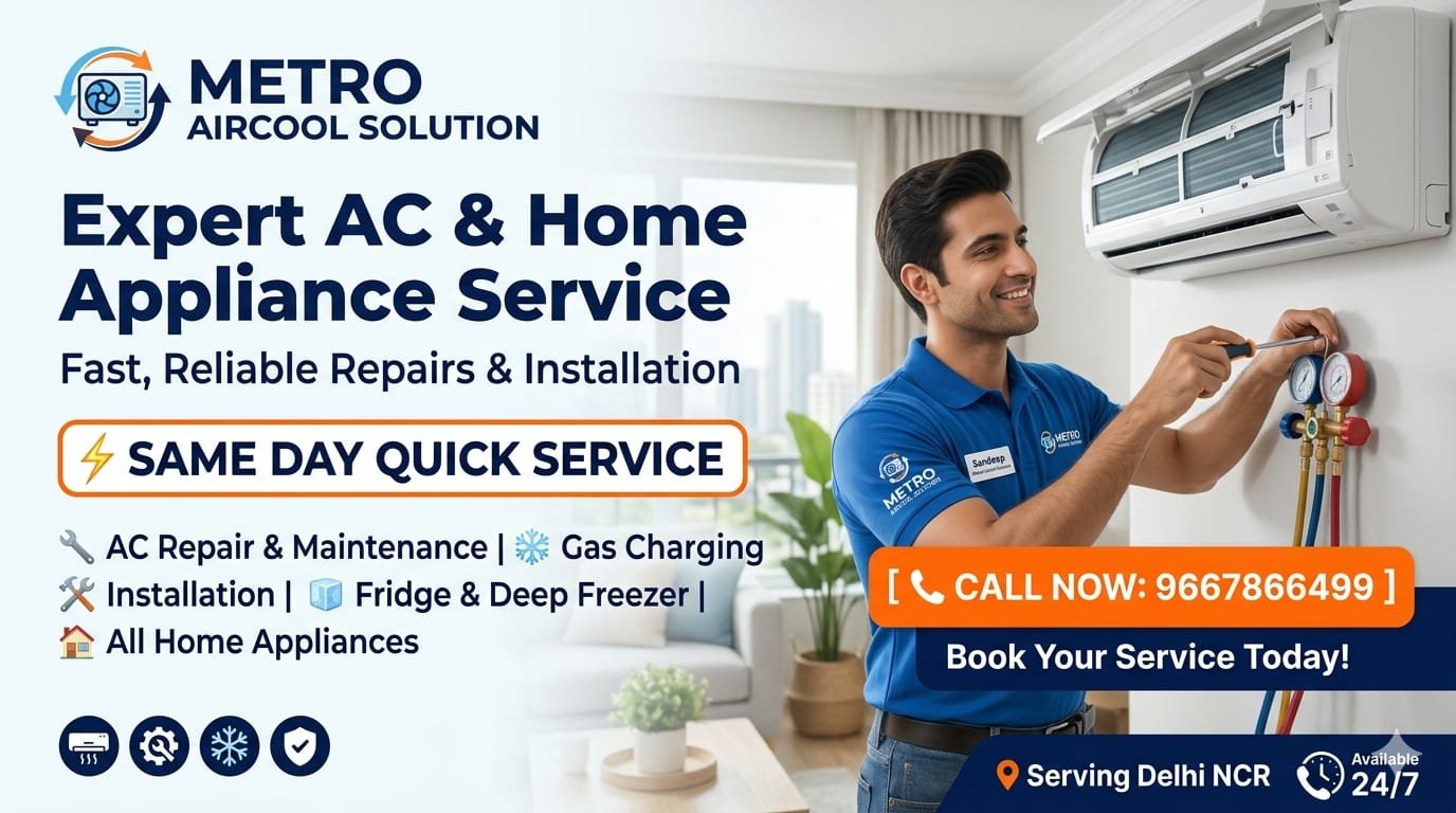 Welcome to Metro Aircool Solution, your premier partner for all air conditioning and home appliance needs across Delhi NCR and Noida. With years of hands-on expertise, we specialize in delivering high-quality, reliable, and affordable cooling solutions to keep your home and office comfortable year-round.